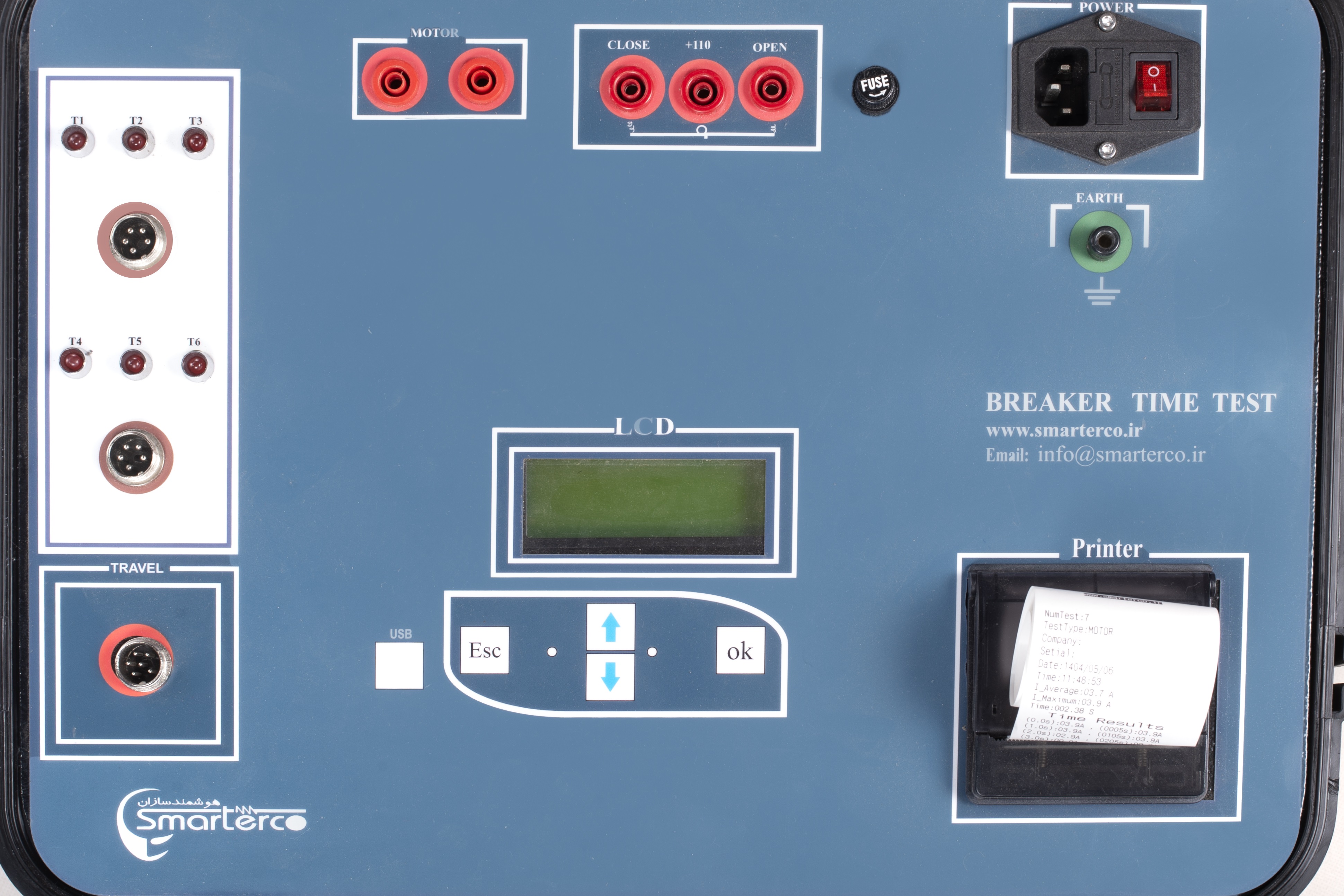دستگاه تایم تست جهت بررسی زمان قطع و وصل مورد استفاده قرار می گیرد . بدین معنی که زمان صدور فرمان به بوبین های قطع و وصل از اهمیت ویژه ای جهت قطع برخوردار است که در حد میلی ثانیه باید باشد و هرچه سریعتر باشد بهتر است . این تست توسط دستگاهی موسوم به تایم تست انجام می شود